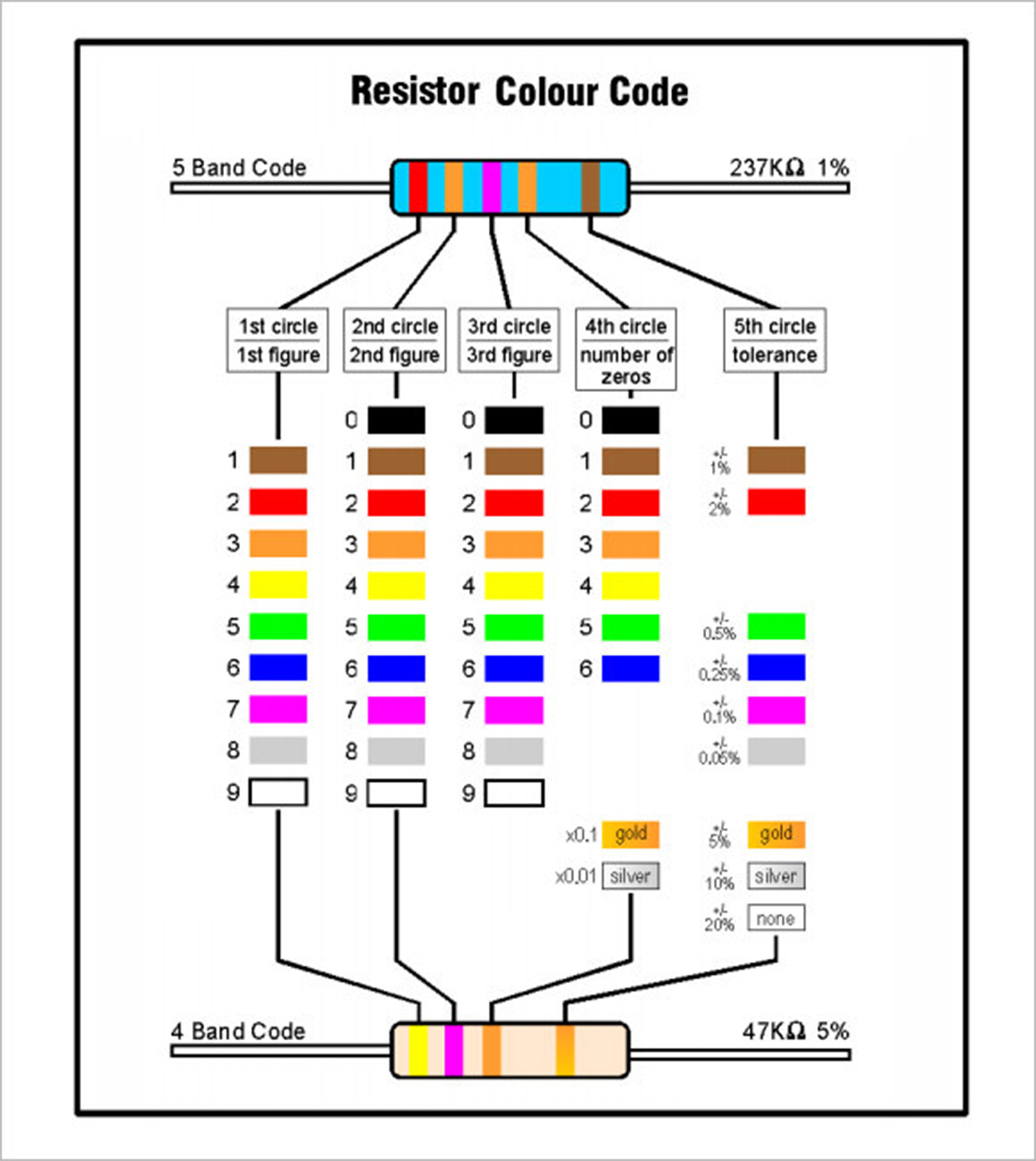 Most Five Band Resistors Are Precision Resistors With Tolerances Of Either 1% Or 2% While Most Of The Four Band Resistors Have Tolerances Of 5%, 10% And 20%.